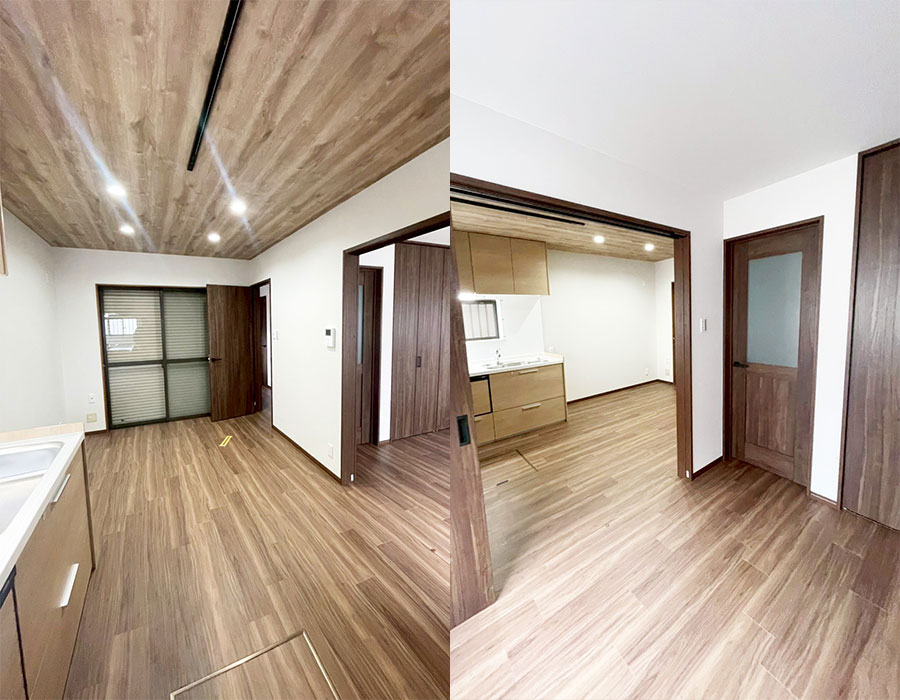 間取りはそのまま、使いやすくなった戸建てリノベ 戸建リフォーム 間取りはそのまま、使いやすくなった戸建てリノベ 松原市 S様 2026.03.27 間取りはそのままで、壁・天井・床・ドアをすべてリニューアルし雰囲気が明るくなりました。 ダイニングは明るめの木材を使用し空間全体の統一感を高めています。 ※費用は税込価格です リフォームデータ 場所 松原市 Before(施工前) After(施工後)